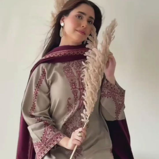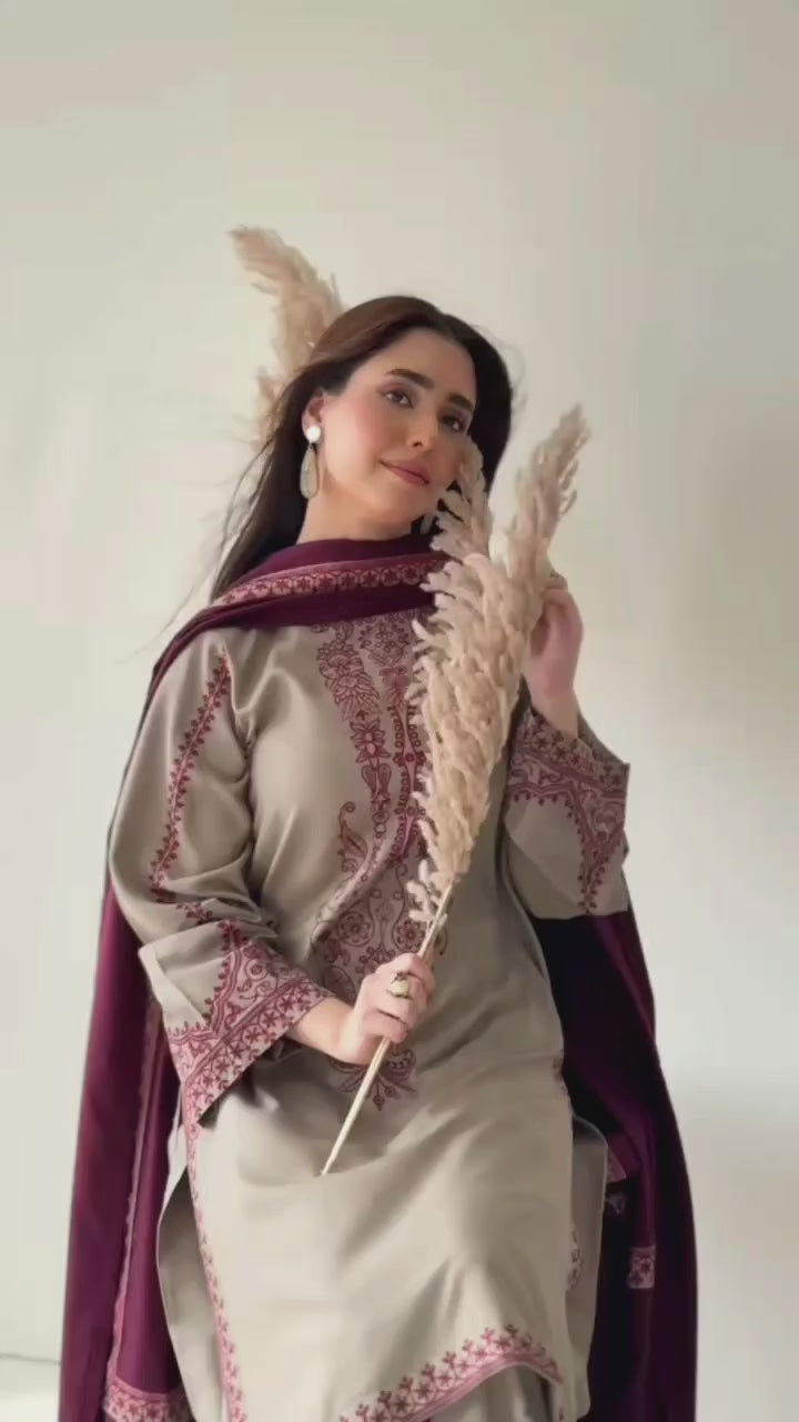 3 Piece - Wedding Session Unstitched Embroidered Drees With Dhanak Shawl-D-O-S>K 700