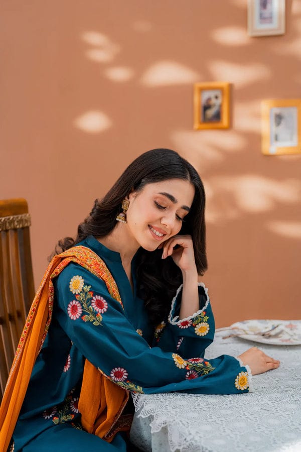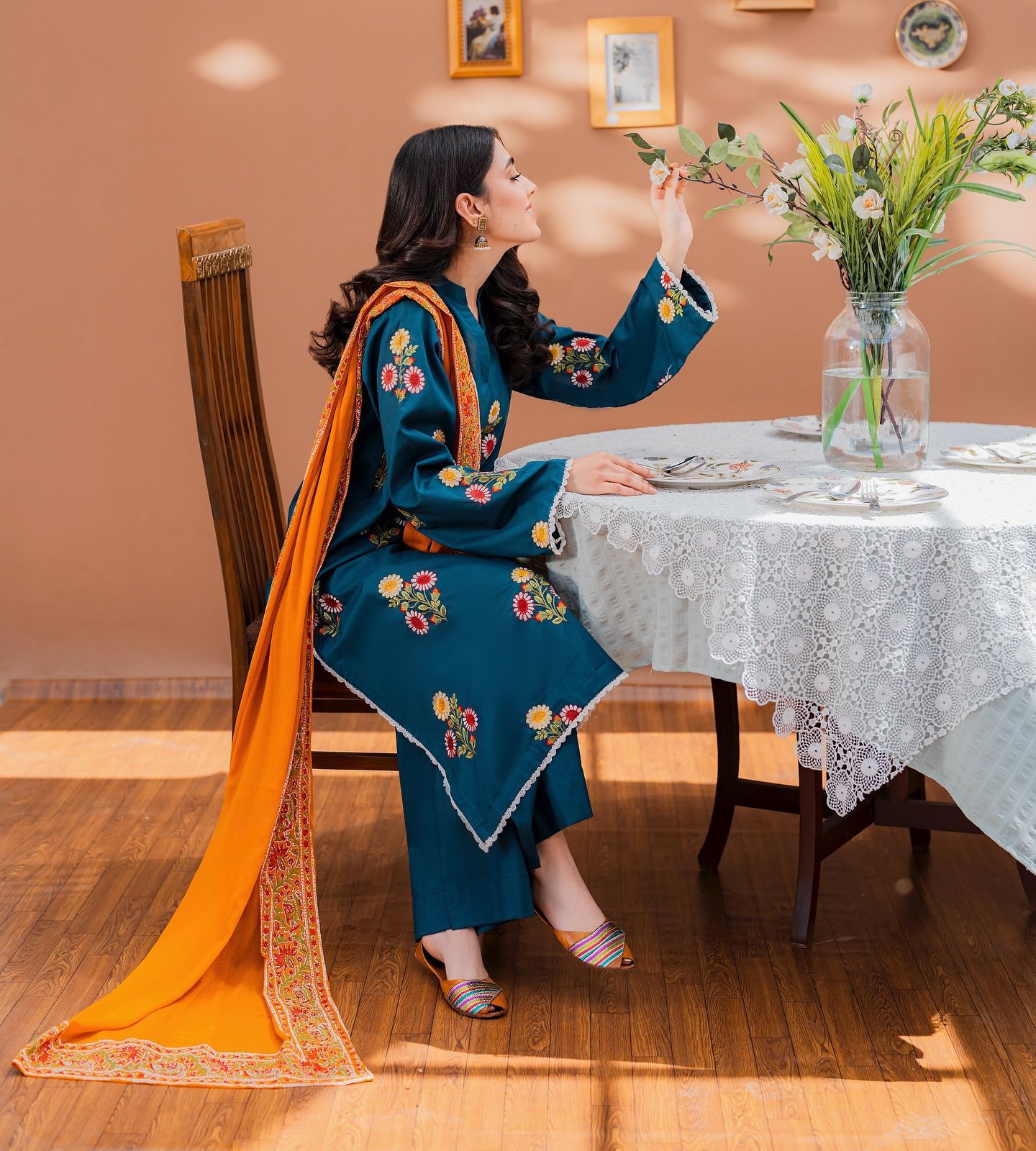 Peacock Bule 3PC Unstitched, Premium Dhanak Fabric