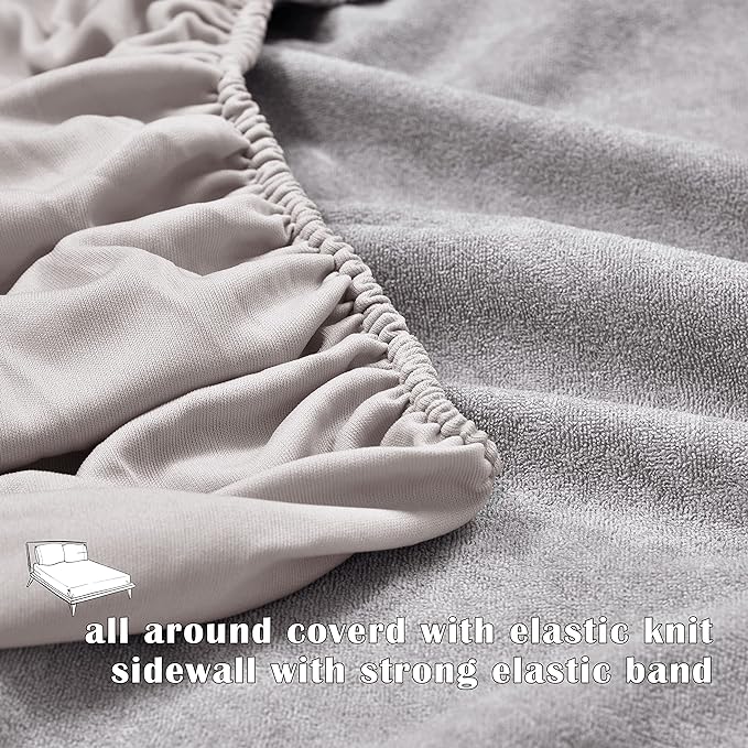 Terry Cotton Ultra Soft Waterproof Mattress Protector | Grey Color | for Kids Adults | Washable Hypoallergenic Mattresses Cover Fit Up To 6-12 inch Deep Pocket Queen & King Size