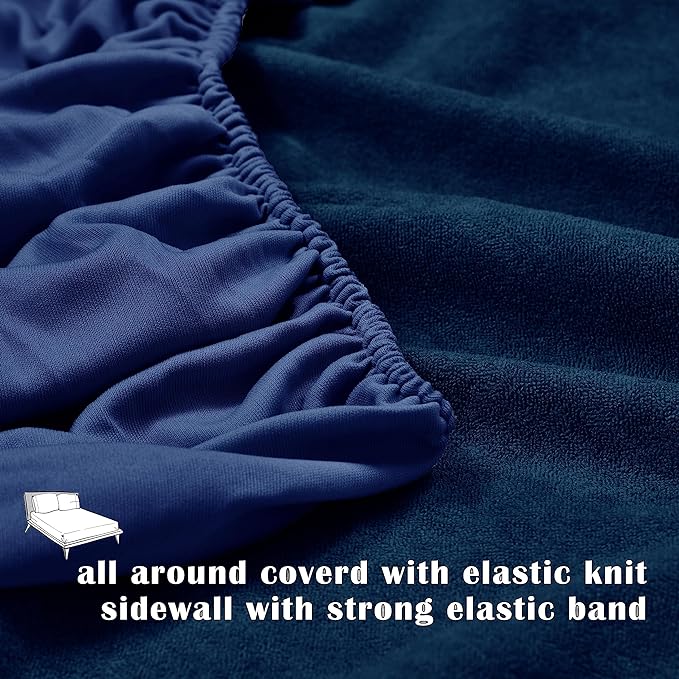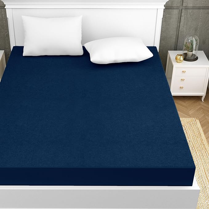 Terry Cotton Ultra Soft Waterproof Mattress Protector | Navy Blue Color | for Kids Adults | Washable Hypoallergenic Mattresses Cover Fit Up To 6-12 inch Deep Pocket Queen & King Size